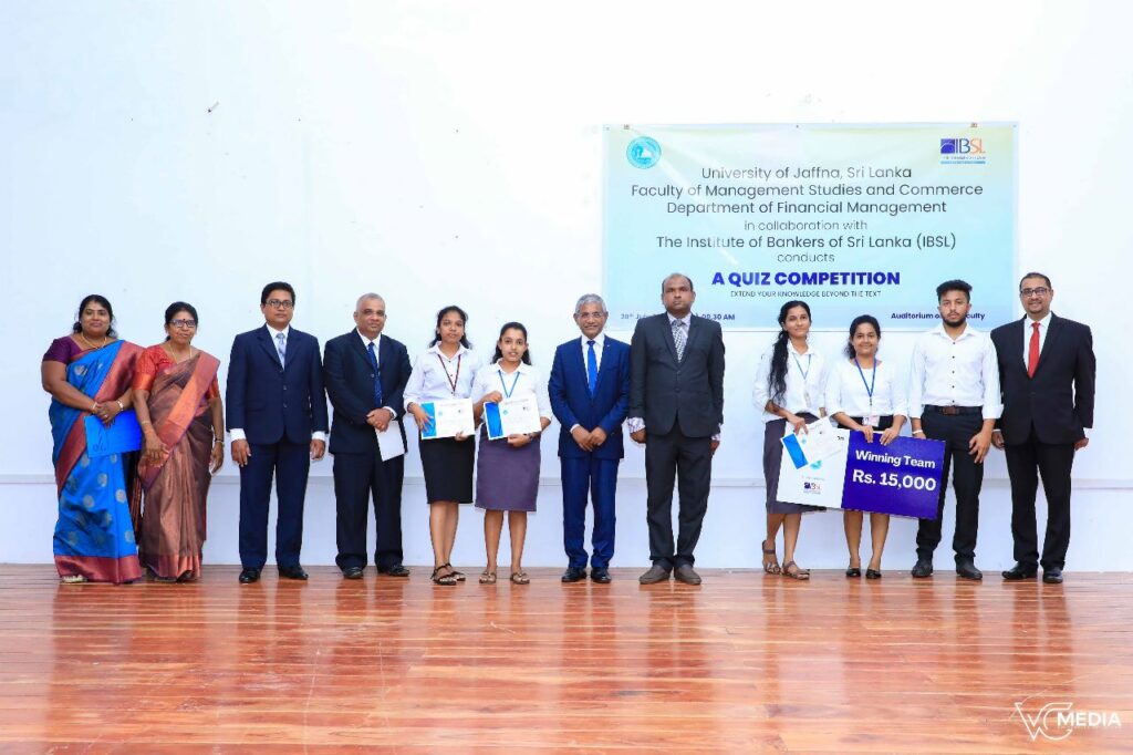 A quiz competition was organized by the Department of Financial Management, Faculty of Management Studies and Commerce, University of Jaffna in collaboration with the Institute of Bankers of Sri Lanka