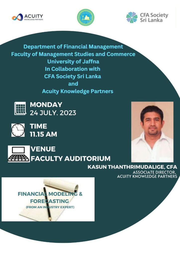 As part of the Memorandum of Understanding (MoU) signed with CFA Society Sri Lanka, the Department of Financial Management at the Faculty of Management Studies and Commerce, University of Jaffna,